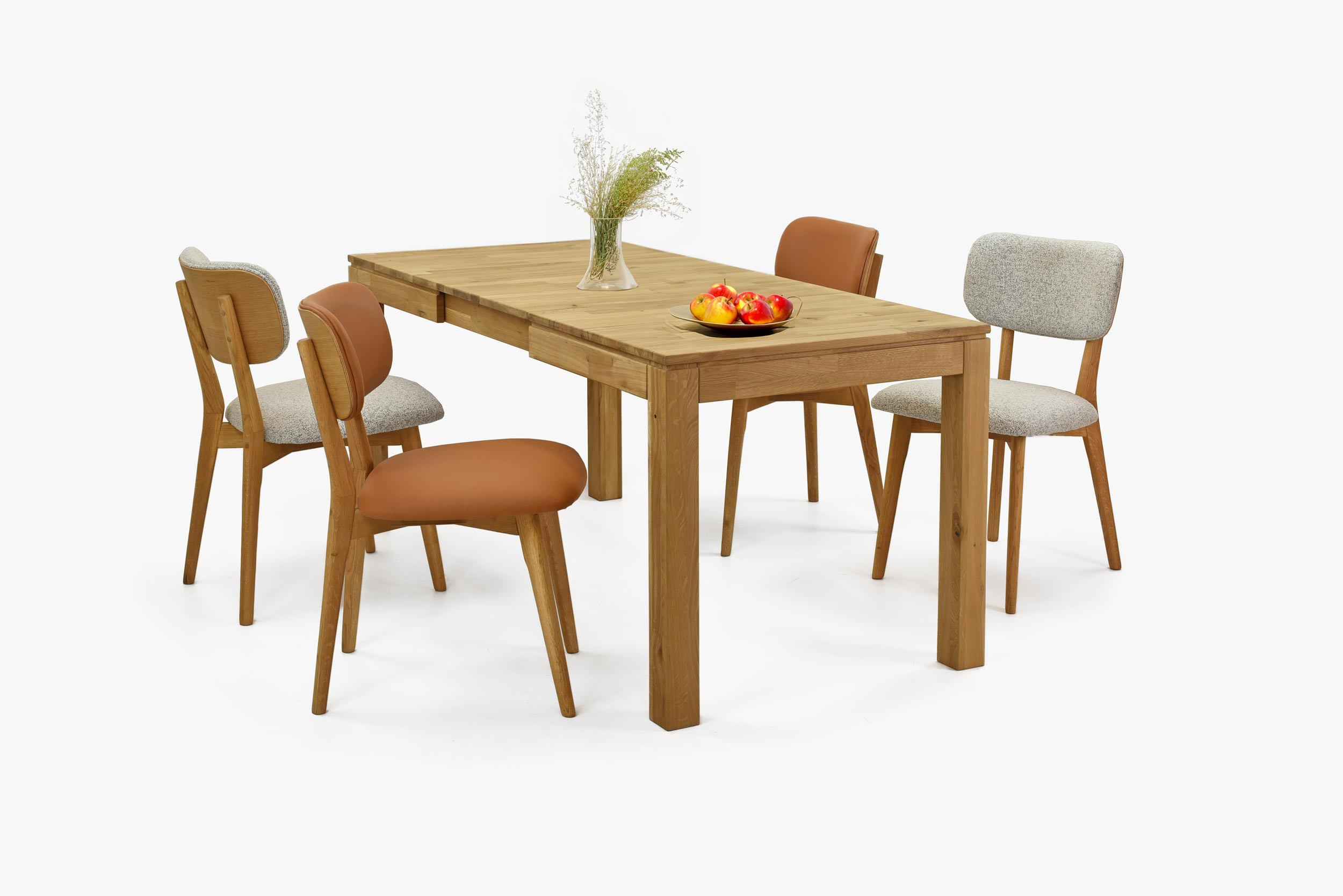 Nábytok je vyrábaný z prvotriedneho európskeho dubu. Každý kus prechádza precíznym opracovaním a manuálnou kontrolou kvality. Viditeľná kresba dreva, suky a textúra dodávajú každej doske jedinečný charakter, ktorý nemožno napodobniť pri lacnejších materiáloch.